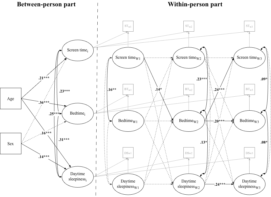 To address these gaps in prior research, this study is the first to examine the longitudinal, reciprocal associations among screen time, bedtime, and daytime sleepiness, accounting for both stable between-person differences and within-person processes.